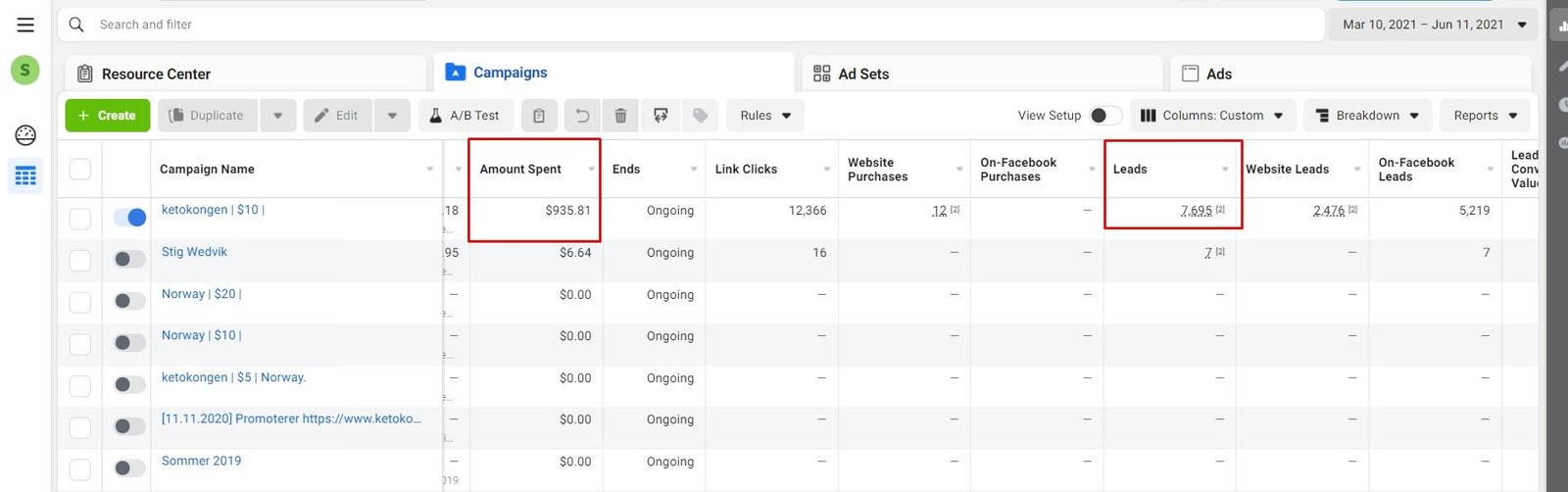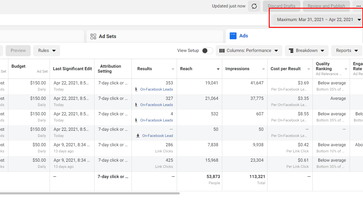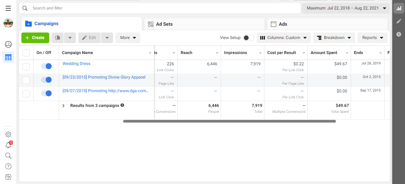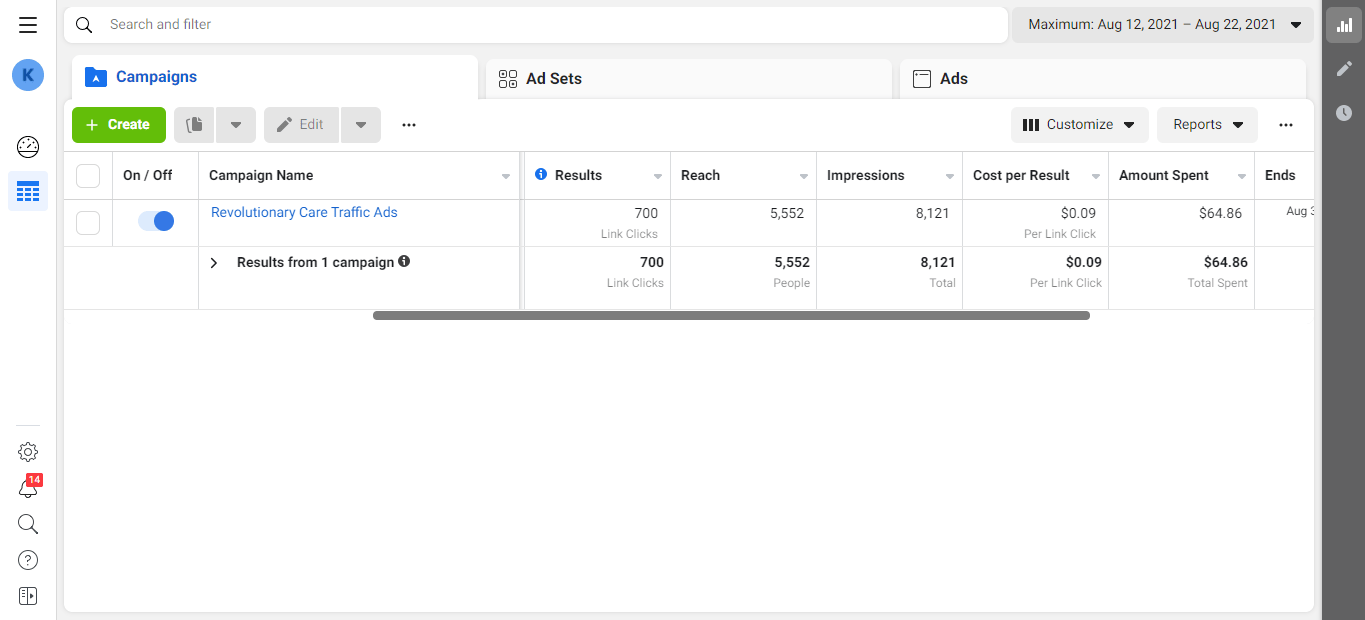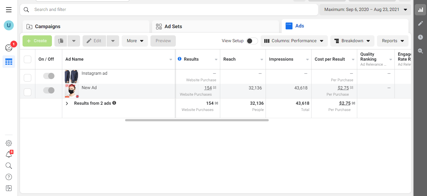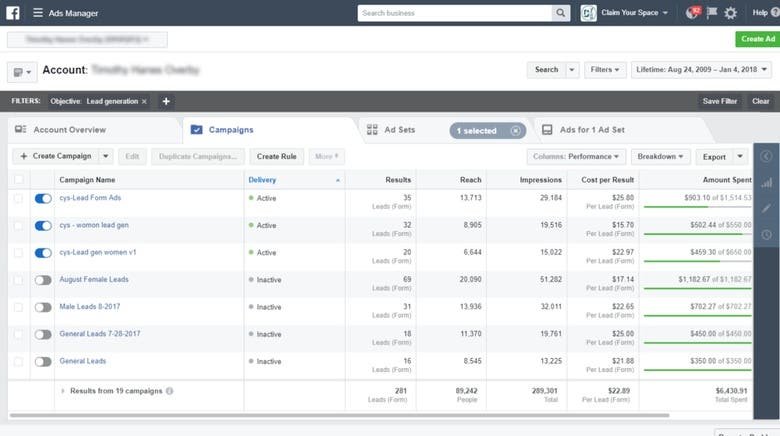 Facebook Ads result 1