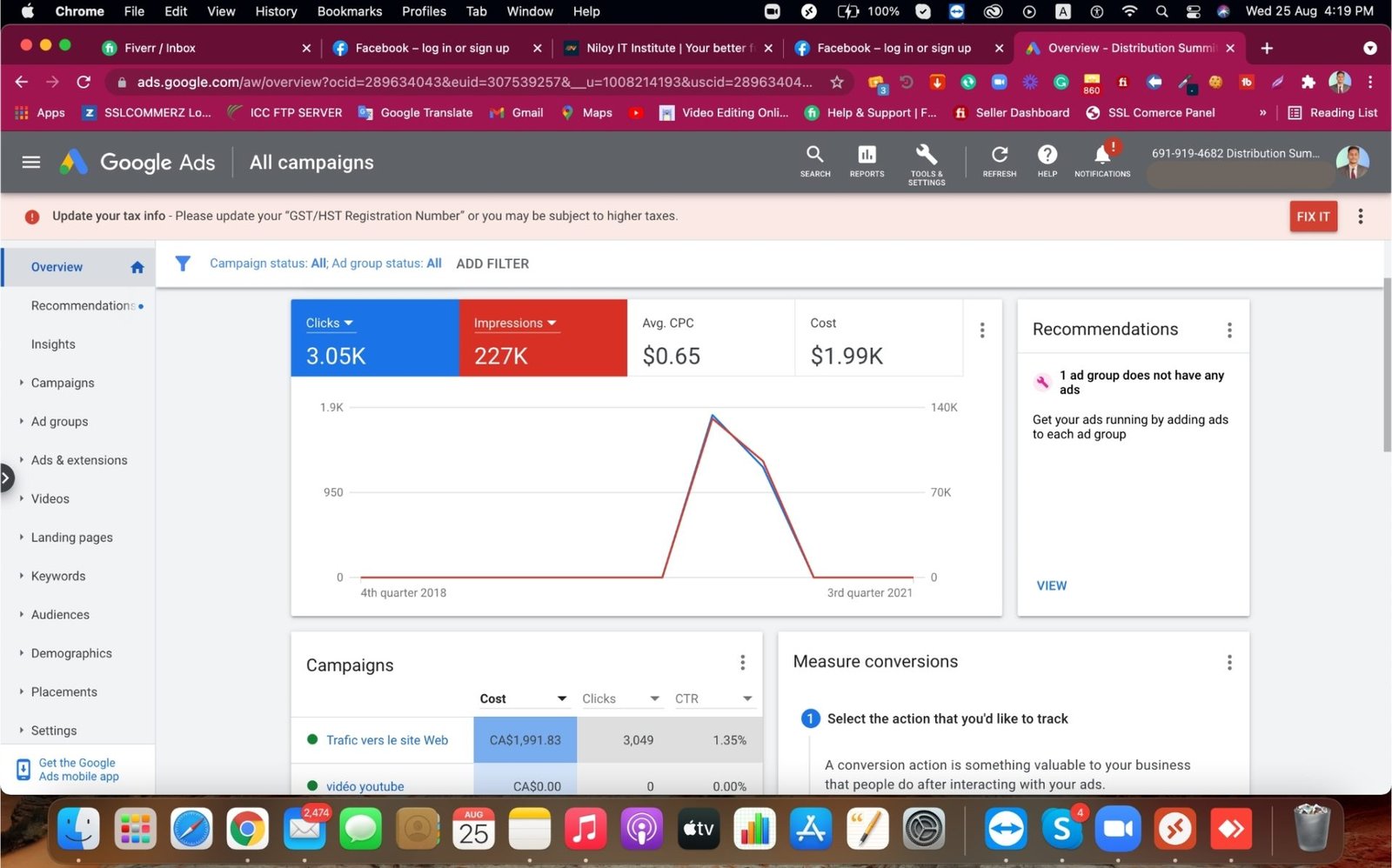Are you looking to maximize your online visibility and drive more targeted traffic to your website? Look no further than our Google Ads campaign services. With our expertise in digital marketing, we can create a highly effective and tailored Google Ads campaign that will help you reach your business goals. Our team of skilled professionals will conduct extensive research to identify the most relevant keywords for your industry and target audience. We will then craft compelling ad copy that engages potential customers and compels them to take action. By strategically placing your ads on Google’s vast network, we will ensure that your brand gets the exposure it deserves. Tracking and analyzing the performance of your campaigns is crucial for making data-driven decisions. That’s why we provide comprehensive reporting and regular updates, allowing you to monitor your campaign’s progress and make necessary adjustments. With our Google Ads campaign, you can expect increased visibility, higher click-through rates, and, ultimately, a boost in conversions. Don’t miss out on the opportunity to harness the power of Google Ads and take your online presence to new heights. Contact us today to get started on your customized Google Ads campaign.